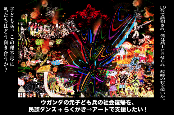 世界各地で課題になっている「子ども兵」。その影響を受けた元紛争地ウガンダの子ども達の今と明日を、彼らとの合作アートでメッセージする活動、どうかご支援ください。よろしくお願い致します。