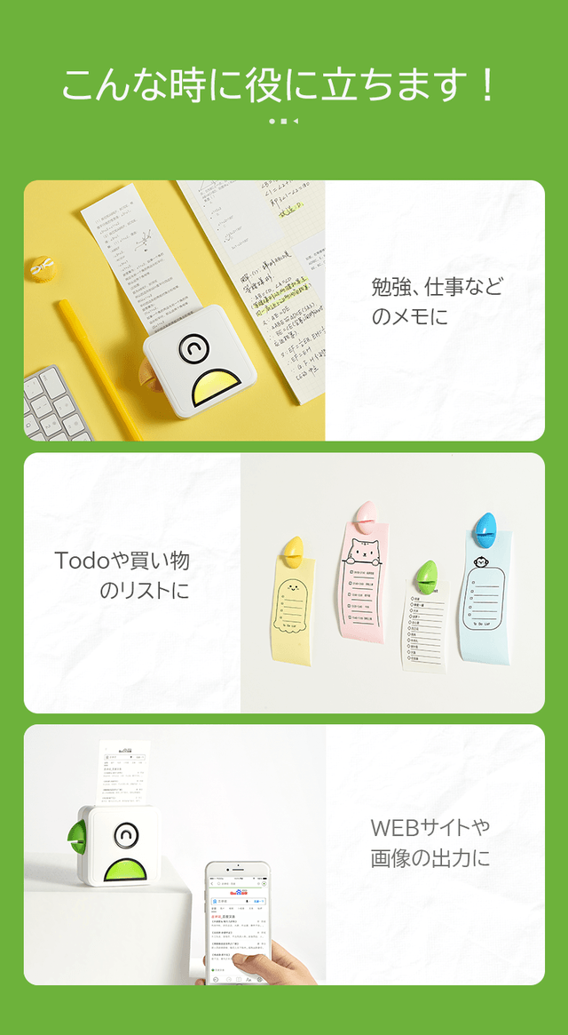 プレゼンやセミナーの資料の写真を撮ったけど、写真が埋もれて見つからない、行先の地図や住所電話番号を印刷したいけどA4用紙だとかさばる、買い物リストと今日のTodoをスマホにメモったけどスマホがバッテリー切れで見れない、学校の講義の量が多すぎて、メモが追い付かない、そんな悩みを抱えたことはありますでしょうか?もしスマホ以外でいつでも確認できたらどうでしょうか?手元にプリンターがあれば、出力して持っておきたいものです。