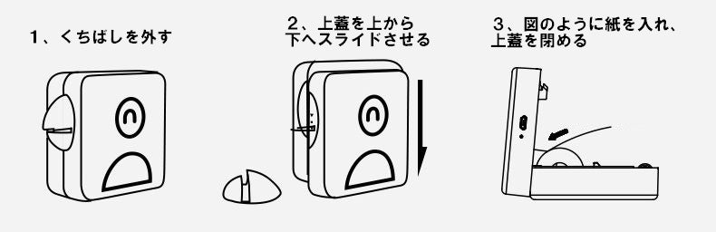 紙のセットも簡単、本体をスライドして紙を入れるだけでOK!
