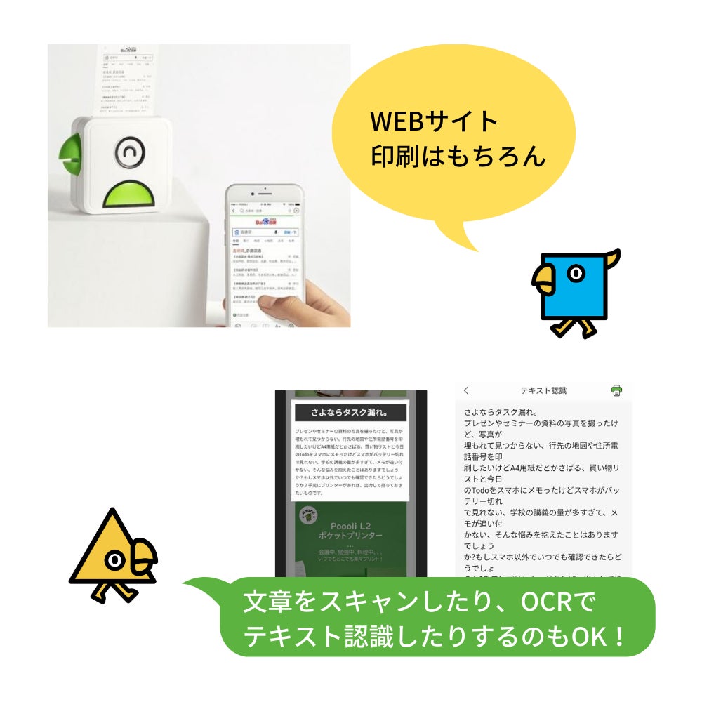 Poooli(ポーリ)は手のひらサイズのスマートポケットプリンターです。 「Poooli」専用のアプリを起動しBluetoothに接続することにより印刷ができ、また印刷だけではなく、印刷内容の編集および作成も可能です!いつでもどこでもスケジュール、リスト、手帳、メモなどを印刷することができるスマートなプリントです。