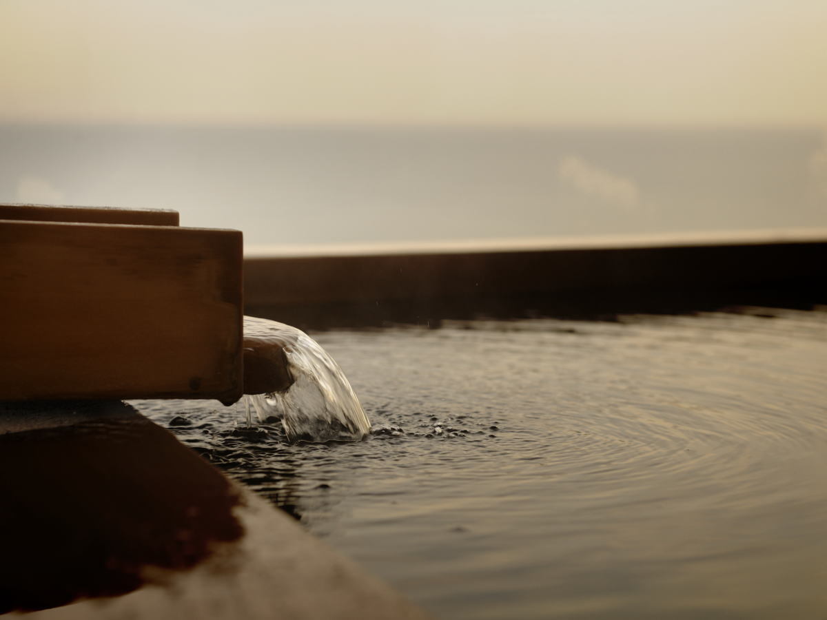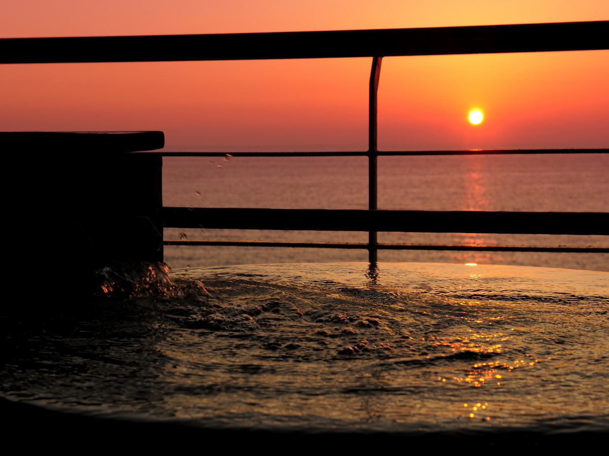 海と温泉の景色が一体となったインフィニティ露天風呂。日本海を茜色の染め上げて沈みゆく美しい景観は、まさに絶景です。圧倒的な解放感と雄大な景色を楽しみながら、瀬波温泉の名湯を存分にご満喫いただけます。
