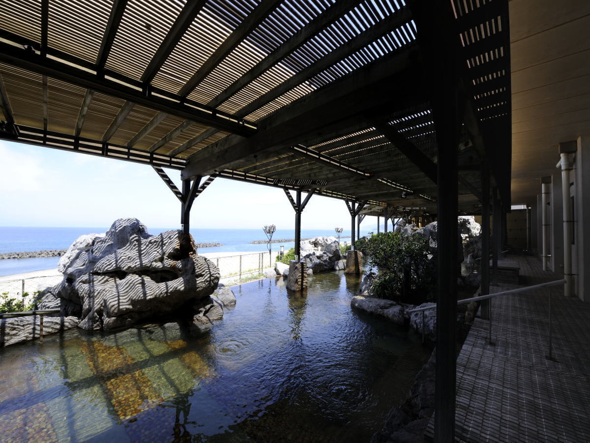 豊富な湯量と95℃の熱量を誇り、別名「熱の湯」と言われており、日本海の目の前という全国屈指のロケーションで人気の温泉地です。
