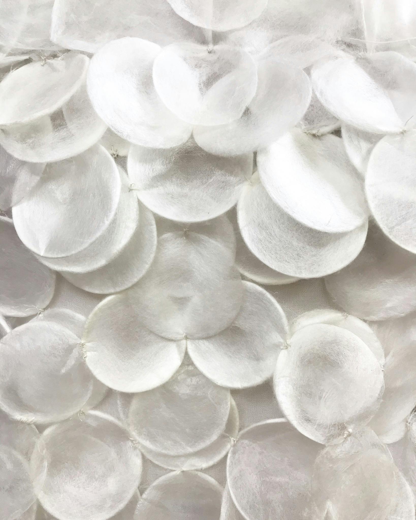 ・ARAKI SHIROのファッションショーで衣装に使われた「真綿×ナノセル素材 1枚+真綿1枚のセット」(※黄色の繭から真綿を作製するため、黄色の素材の場合がありますが、繭本来の色ですので、ご了承ください。)