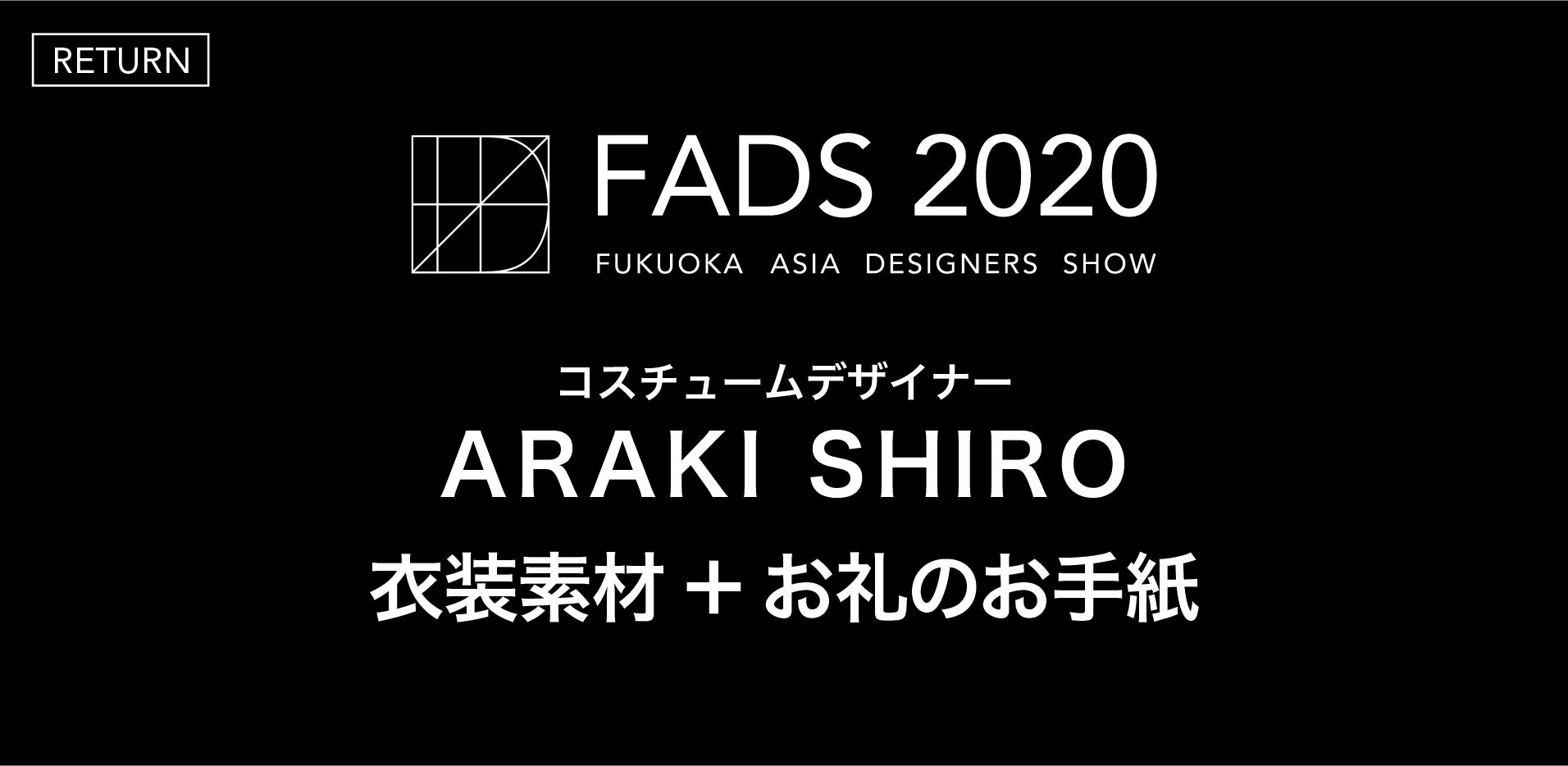 FADSは福岡を中心とした九州、アジアの若手のデザイナー発掘と育成を目的に、㈱Quantizeがコスチュームデザイナー ARAKI SHIRO氏と発足し、福岡市と共催で立ち上げたプロジェクトです。