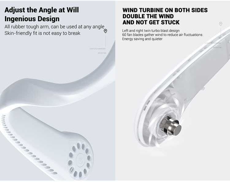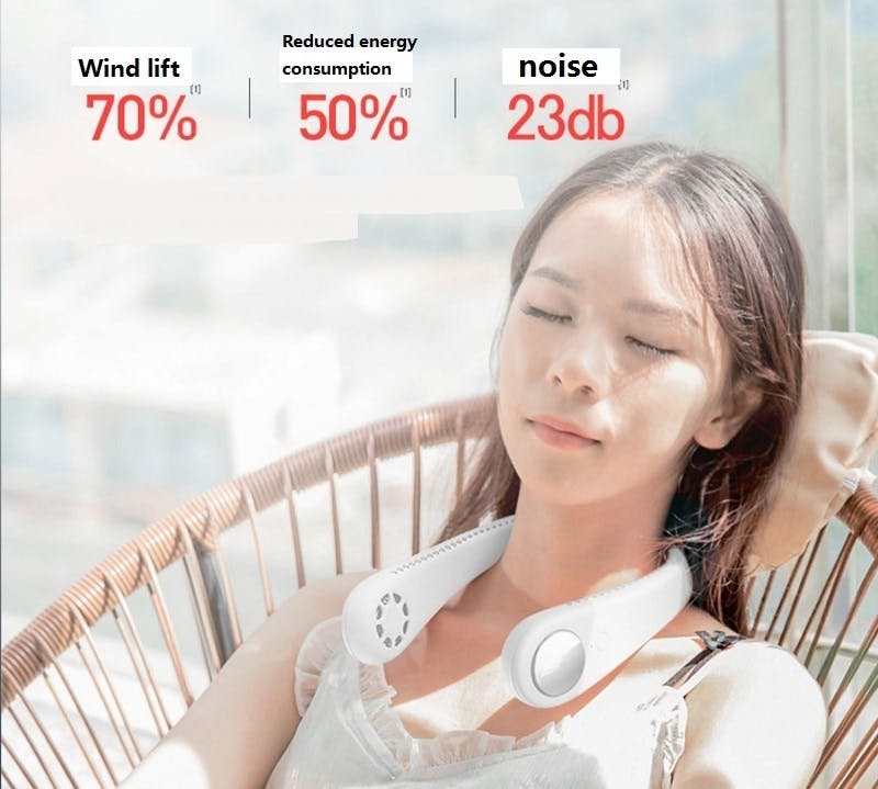 iCooLは従来のプロペラ型の首掛け扇風機とは異なり、羽根の無いターボエアーフローファンを採用し、ネックバンドには48個ものサラウンドエアアウトレットがあり、そこから首筋に冷たい風を直接運んでくれます。