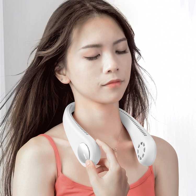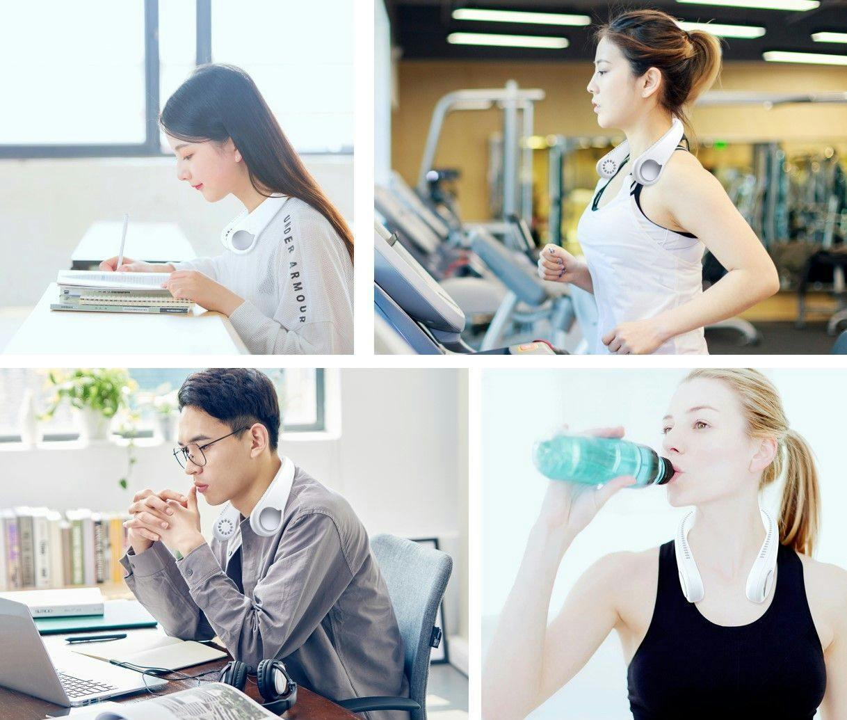 iCooLはハンドフリーデザインを採用し、首掛け式でどこでも使用する
