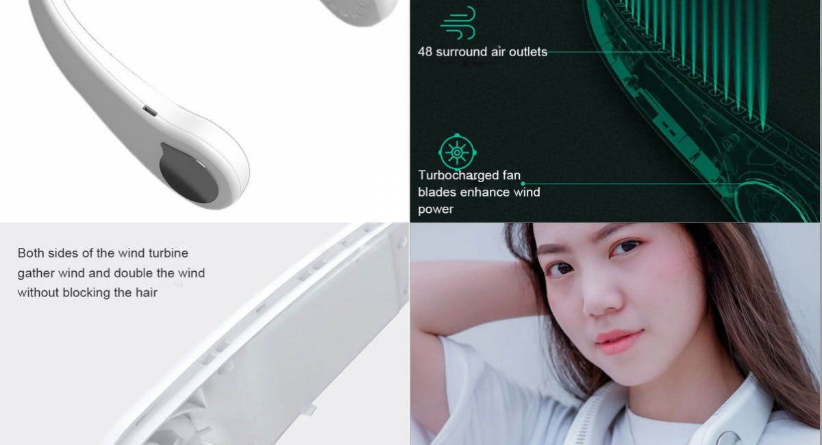 iCooLはハンドフリーデザインを採用し、首掛け式でどこでも使用する