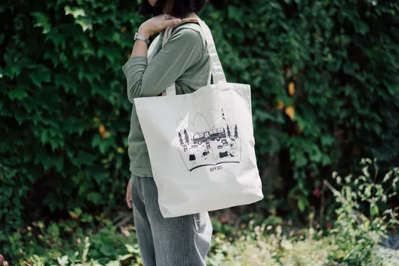 結果的に最も人気を集めた兎村彩野さんによるブックバスグッズ一式のひとつ、トートバッグがこのほど納品されました。