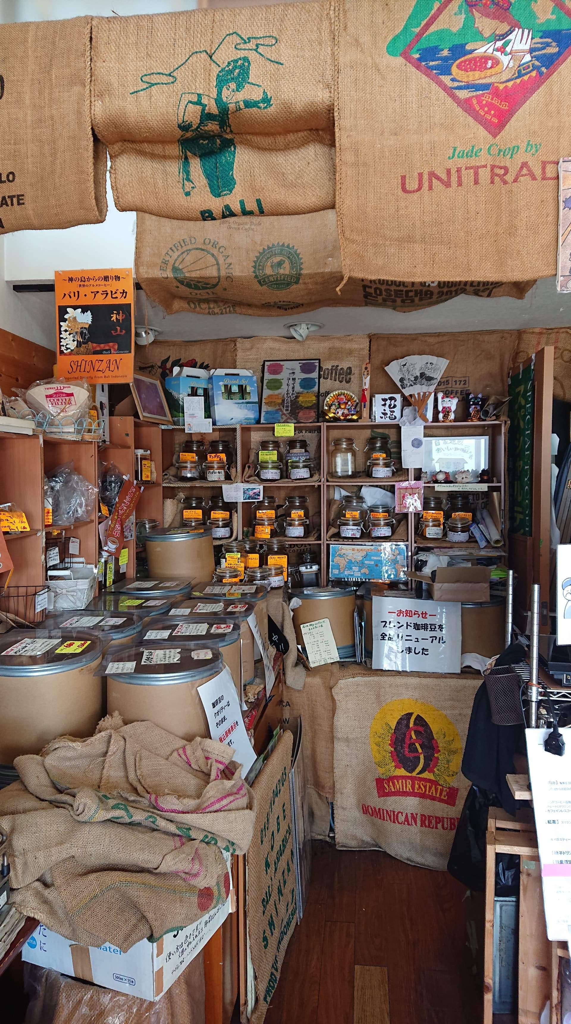 店内の様子:珈琲豆が所せましと陳列してあります。