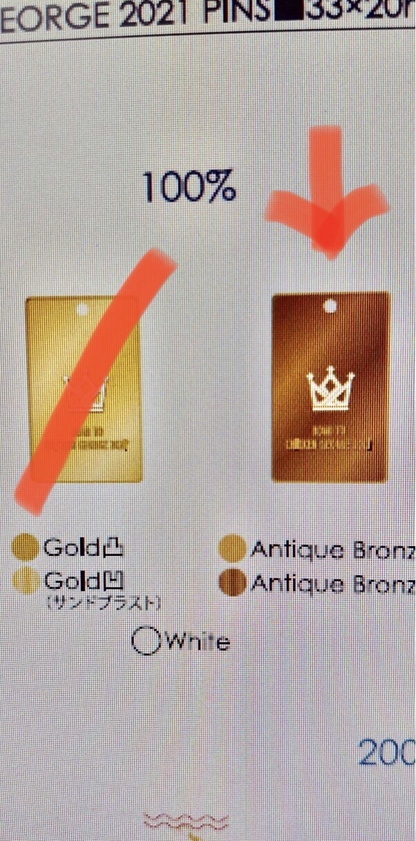 (画像わかりにくいですが、右側アンティークブロンズ色。王冠は白く見えていますが刻印の彫り込みとなります。)