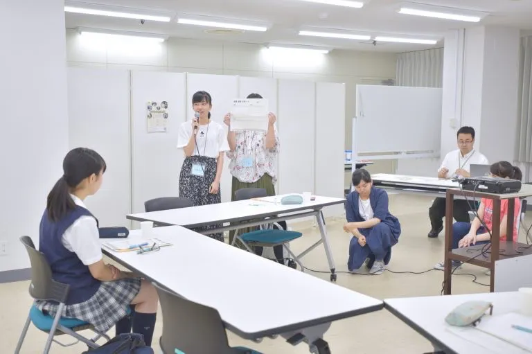 また、インターン活動終了後に開催される成果発表会に向けての話し合いも行います。司会や受付といった担当決めや、宣伝用の広告作り、会のセッティングなどをワカモノが中心となって考えます。大人や誰かに決めてもらうのではなく、自分たちで決めたことで、ワカモノ同士の団結力がどんどんと強くなったように思います。