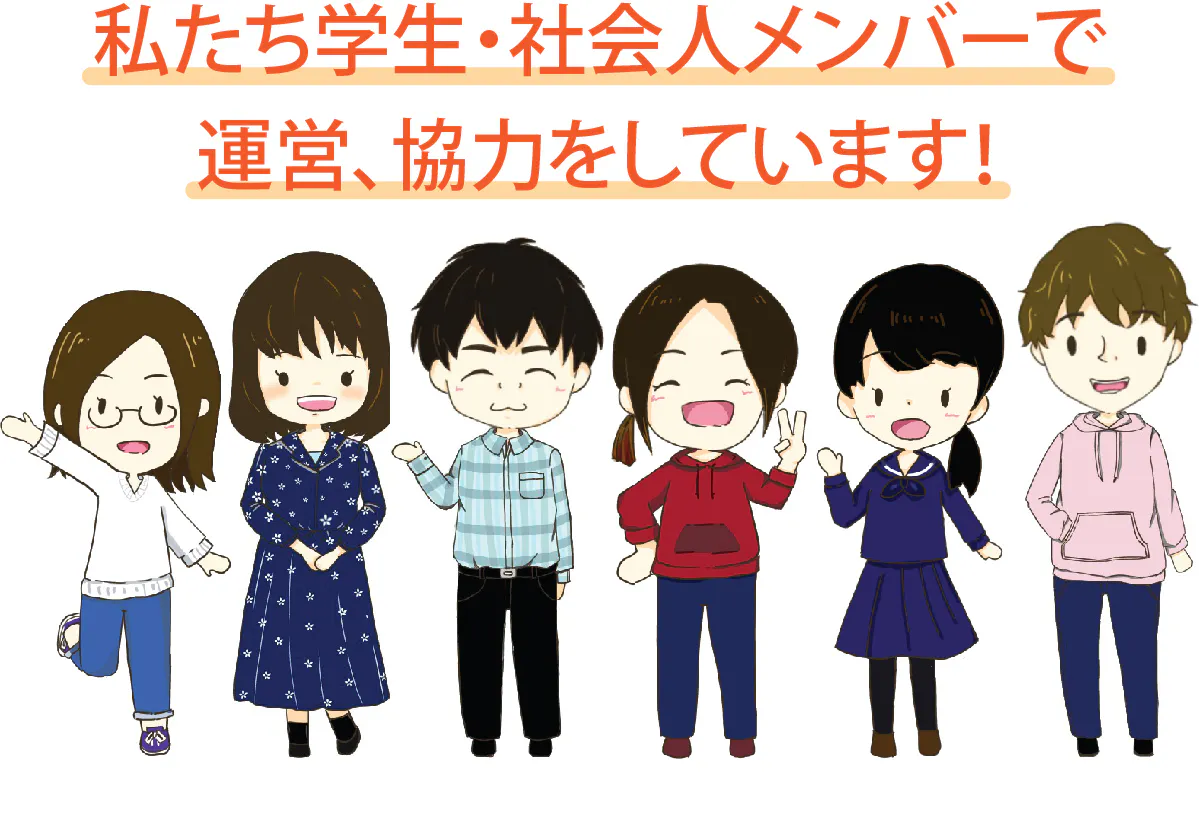 受験や就職などを迎えるワカモノにとって、一年一年が挑戦や経験を積む大切な時間であり、決して無駄にはできません。そこで!私たち学生は、オンラインを活用したプログラム運営を行い、これから参加される新たなワカモノの地域活動を応援・サポートしていきます!