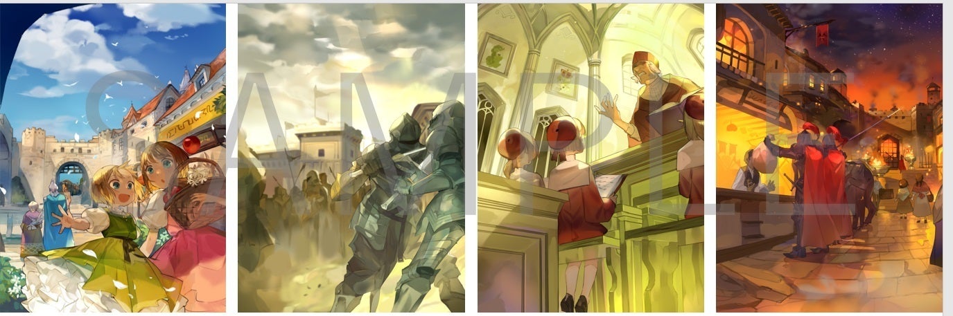 「Dupli」のカードデザインを一部公開!7月にクラウドファンディングを行っていた、「Dupli」のカードデザイン4種類が完成いたしました。投資をいただいた皆様のおかげで、完成に近づいております。本当にありがとうございました。今回の活動報告では、「善政」・「練兵」・「愛国教育」・「悪政」のカードデザインについてそれぞれ公開いたします!1.「善政」「善政」を使った王の国内では、快晴の城下町で、国民達が平和なひと時を過ごしています。籠を抱えている少女二人が、林檎と花の入ったカゴを持って談笑している姿が特徴的ですね。青いマントの兵士もおばあちゃんの歩行を補佐しています。全体的に明るい色が基調となっていて、色鮮やかなカードデザインです。2.「練兵」「練兵」の政治のもとでは、曇りがかった空の下で兵士が鍛錬を積んでいます。「善政」のように青みがかった色でも、「悪政」のような赤みがかった色でもないこのカードは、善にも悪にもなりうるような雰囲気が感じられます。戦力の強化がどのような政治に帰結するかは、国王の手に委ねられます。3. 「愛国教育」「愛国教育」のカードでは、偏った思想を持つ教師が純粋な生徒達が、国に忠誠を尽くすような教育を受けています。ゲーム中では、少しテクニカルな使い方をするカードとなっており、「悪政」を子供の頃から受け入れさせるような、歪んだ教育を表現しているカードデザインとなっています。4. 「悪政」「悪政」を使った王の国内では、赤いマントの兵士が店から財産のようなものを取り上げています。国民たちの様子も非常に暗く、「善政」では正面に位置していた2人の女の子が後方に描かれていますが、カゴには何も入っていません。全体的に暗い色がベースとなっており、陰鬱とした雰囲気が伝わってきます。おわりにDupliを可能な限り多くの方に知って欲しいので、このページをTwitterなどで拡散いただけると嬉しいです。10月中旬をめどに予約販売も行う予定です!随時ご報告していきますので、よろしくお願いいたします。