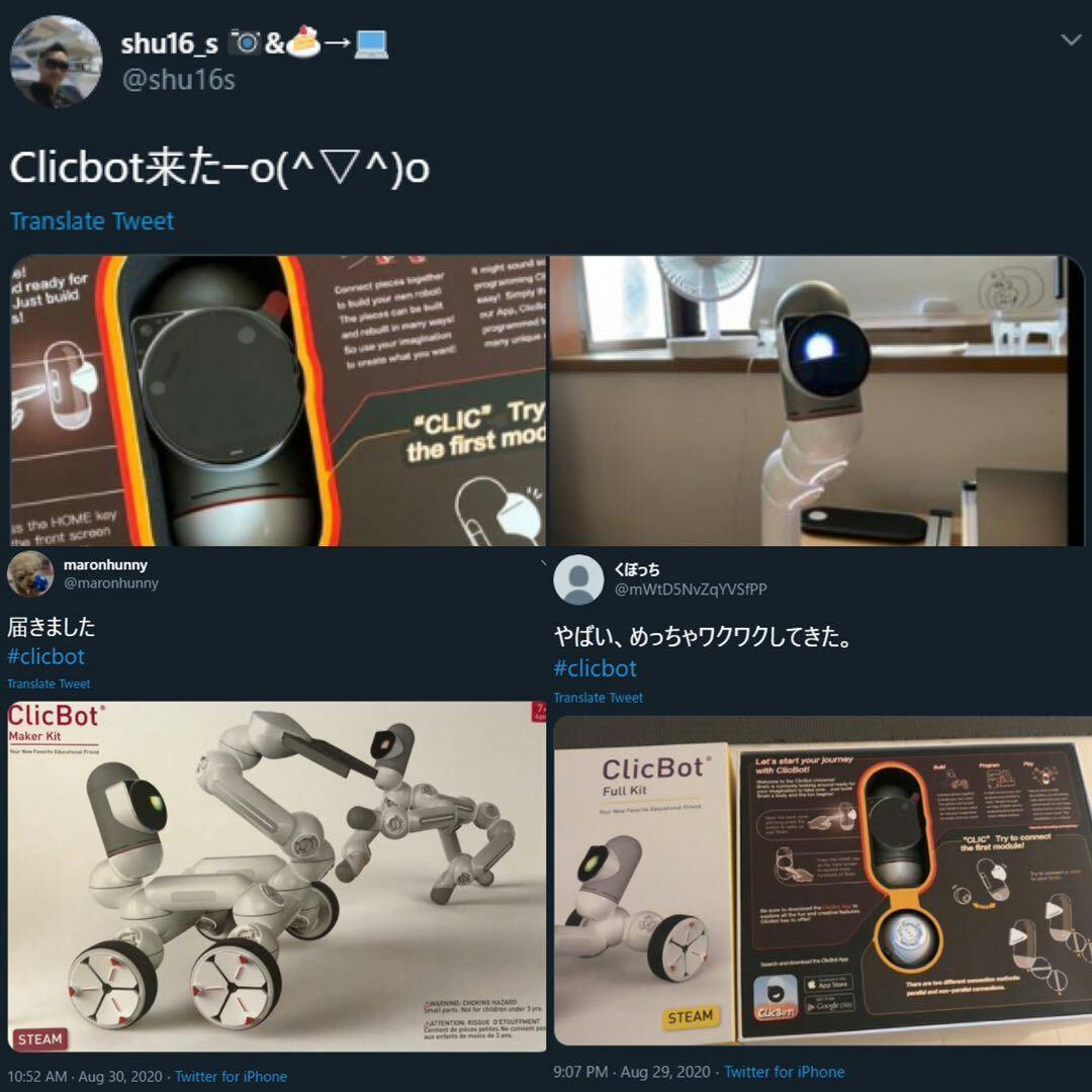もう手元へ届いた方もいるようで、ツイッターにはたくさんのClicBot動画や画像をアップしていただけております(≧▽≦)