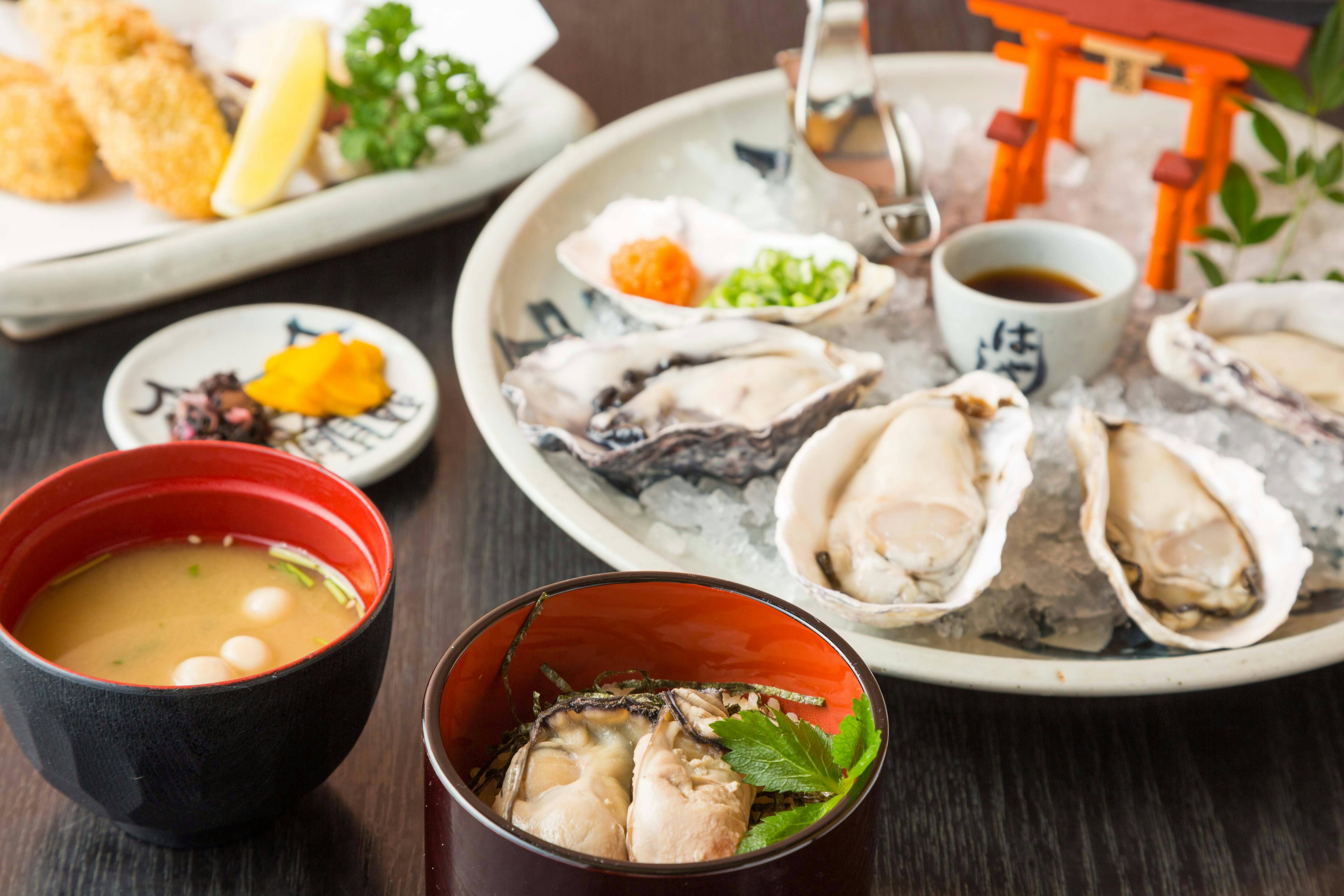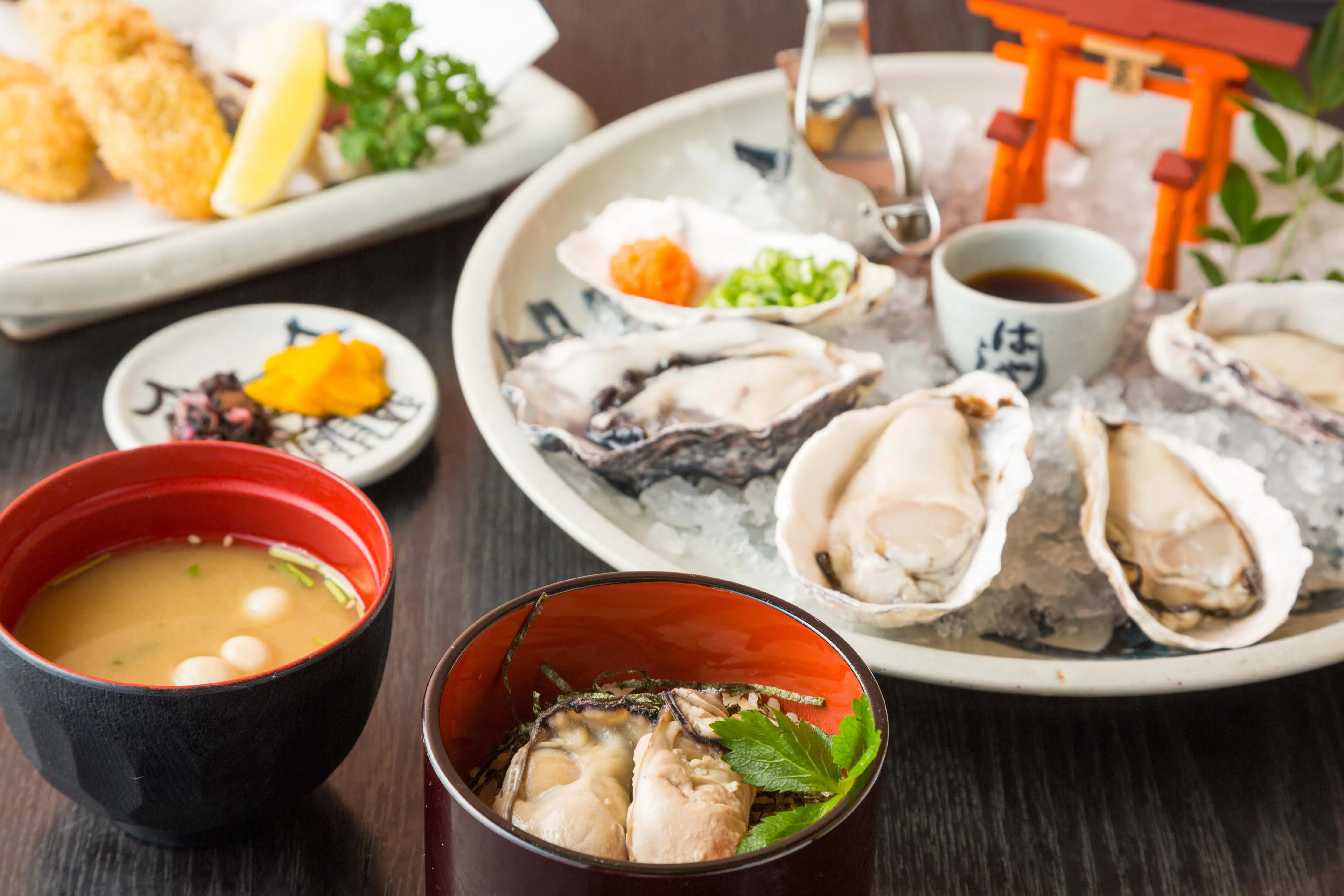 弊社は40年以上前から海外の旅行者向け、国内向けに生がきを一年中食べられることを徹底的に追求して参りました。盛り付けも嚴島神社の大鳥居を思い出していただけるように写真のような状態で提供しております。また、食器にも拘り、すべて地元のオリジナル“宮島御砂焼”を使用しております。お陰様でトリップアドバイザーにおいて5年連続でエクセレンスを獲得いたしまた。