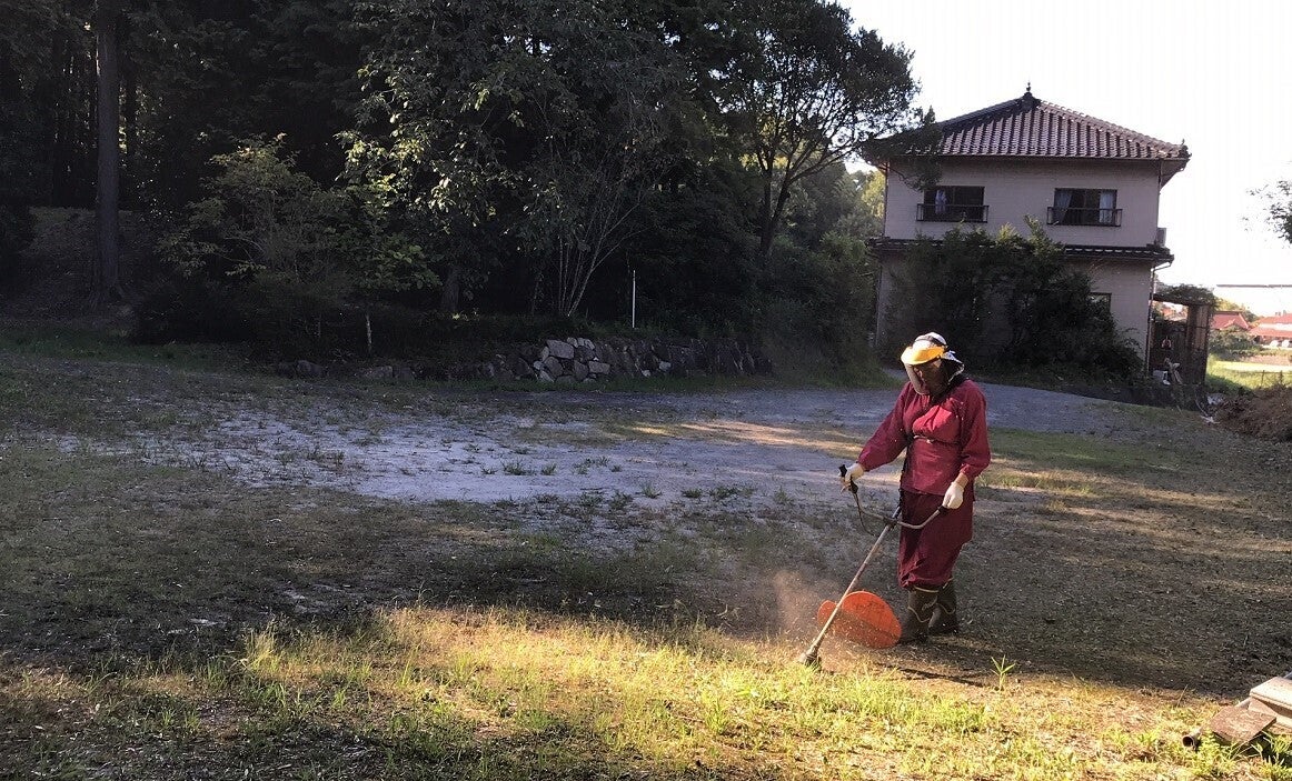 保田窯の駐車場を草刈りしています。草刈りをするのにも皆様のご支援のお陰で目標金額を達成することが出来て、暑さの中でも元気が出ます。写真の左奥が駐車場になり公弥ちゃんのすぐ後ろ側が保田古墳です。右側に曲がると10メートルの保田窯の登り窯が鎮座していて、その先に工房があります。募集終了まで残り9日となりましたが、皆様どうか引き続き応援宜しくお願い致します。