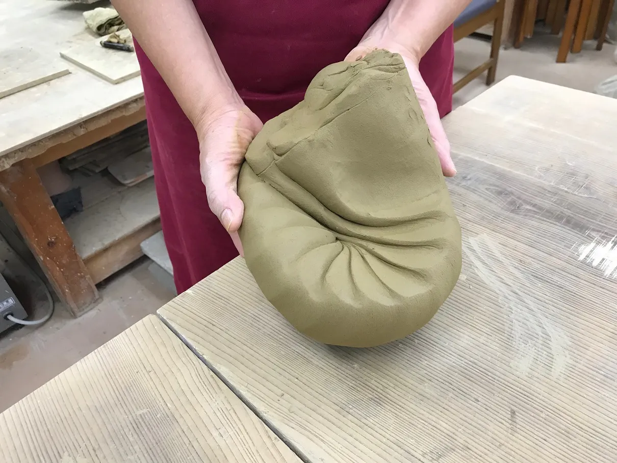 粘土をロクロに載せると、土殺しと云われる粘土の癖を無くし、中心に合わせる為の、粘土を上下に引き上げたり下ろしたりする工程があります。