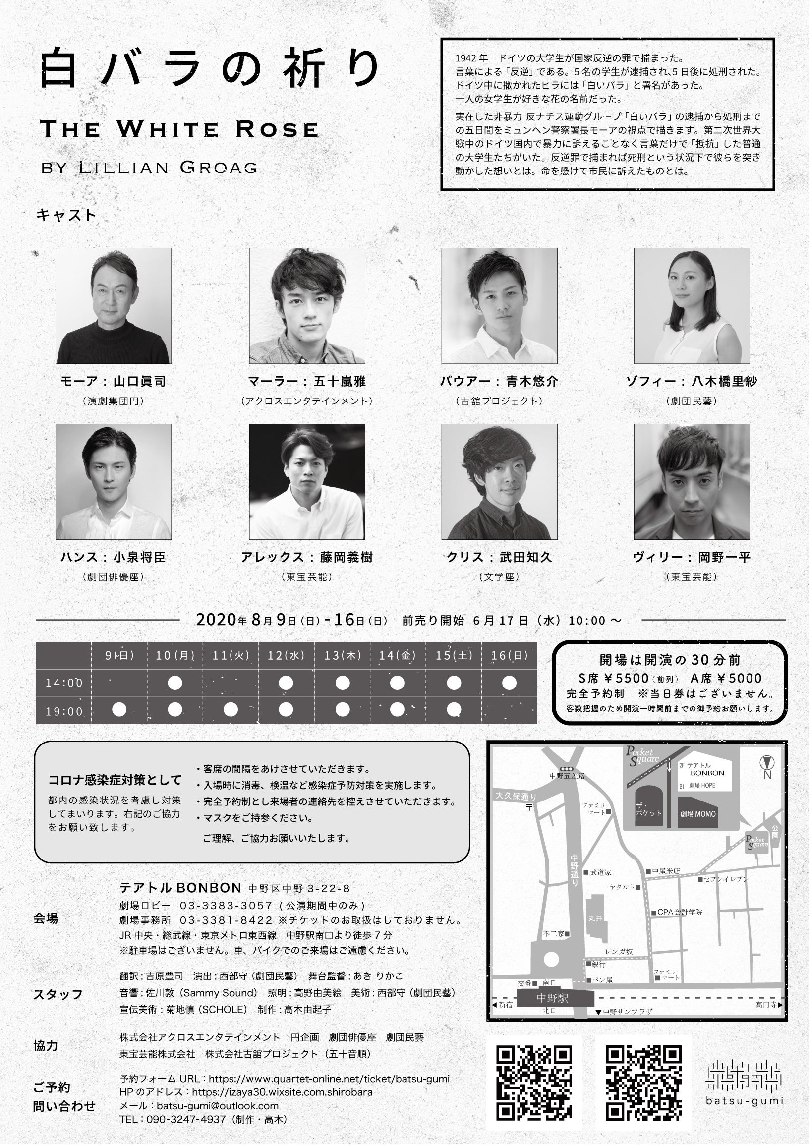 2020年8月9日~16日にVOl.1「白バラの祈りThe White Rose」公演を行います。