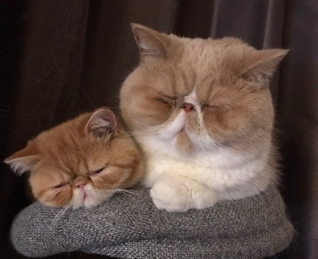 生まれたときからかわいい〜!と私はメロメロで、新幹線等使って2時間かけてブリーダーさんの元へ主人と見学に行ったことを思い出します。優しくて素敵なブリーダーさんの元でスクスクと育ったいろはちゃん。お迎えして最初に先住猫のひふたんが、いろはちゃんを見て、ニャン生初のシャーをしてびっくりしたこと。いろはちゃんも負けずにシャーを返したこと。今では2人とも大の仲良しで、くっついて寝ていることもある程です。まだ一緒に暮らしだして3ヶ月程しか経っておりません。あまりにもかわいいから、神様に気に入られてしまったのでしょうか。どうか、連れていかないでください。。と祈る毎日です。
