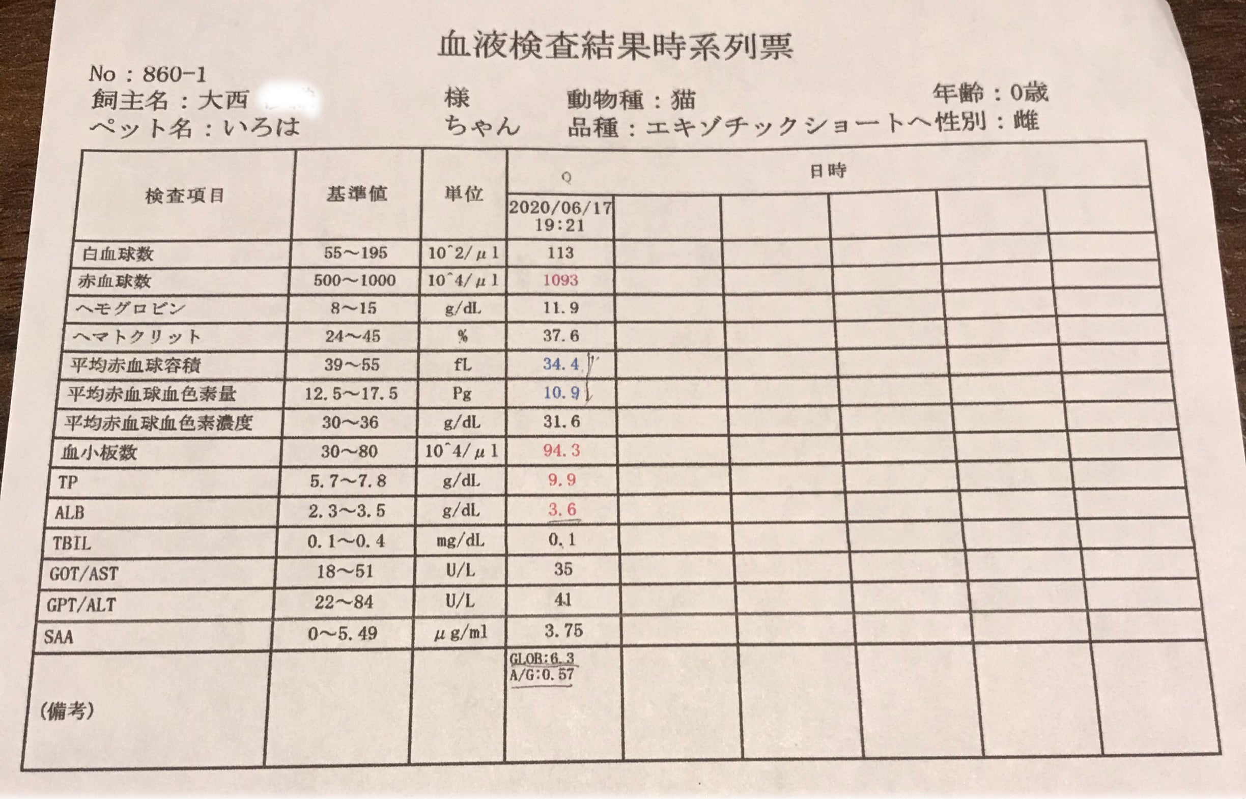 <採血結果、貧血あり>