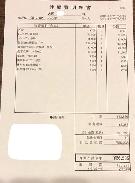 <新病院にて1回目通院時明細書>