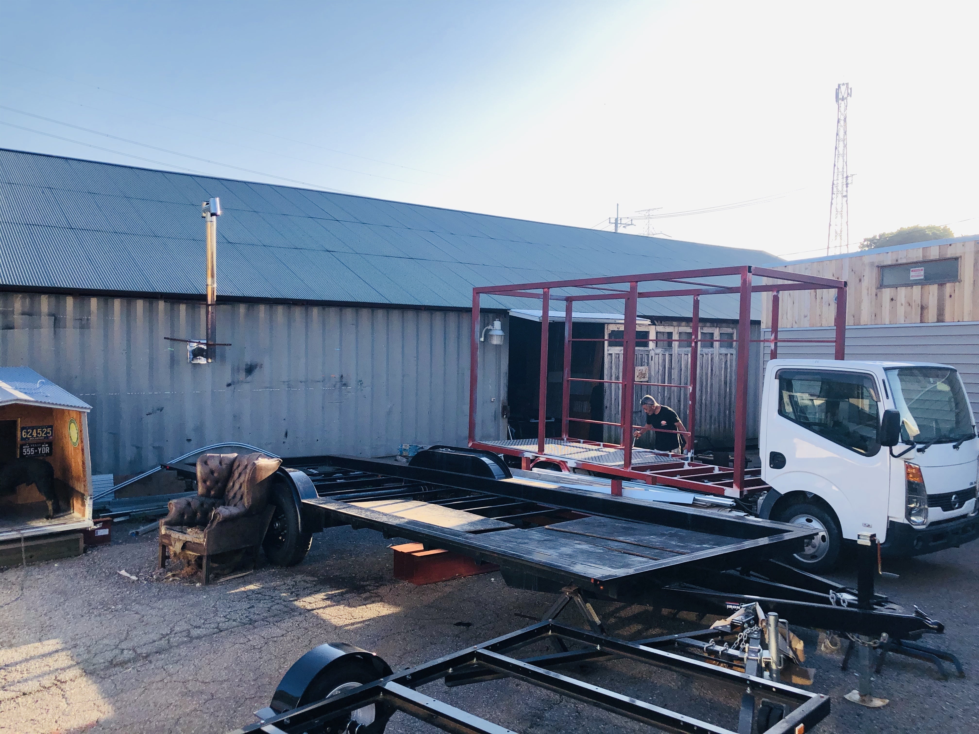 そして、先日、購入したベースとなる私たちのトラックも、現在、荷台が取り壊され、店舗の枠組みが制作されていました。