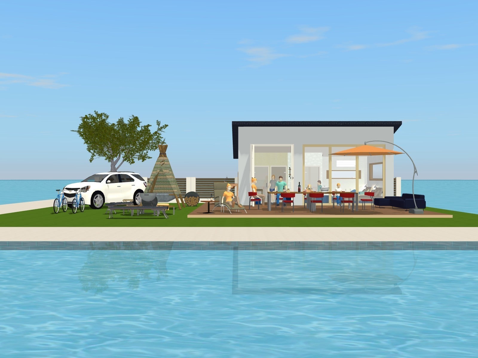この場所をイメージ図のような、BBQやマリンスポーツを中心としたアウトドアを快適に楽しめる空間としてリノベーションし、開放的な空間で多くの方に、心穏やかな時間を過ごして頂きたいと思います。