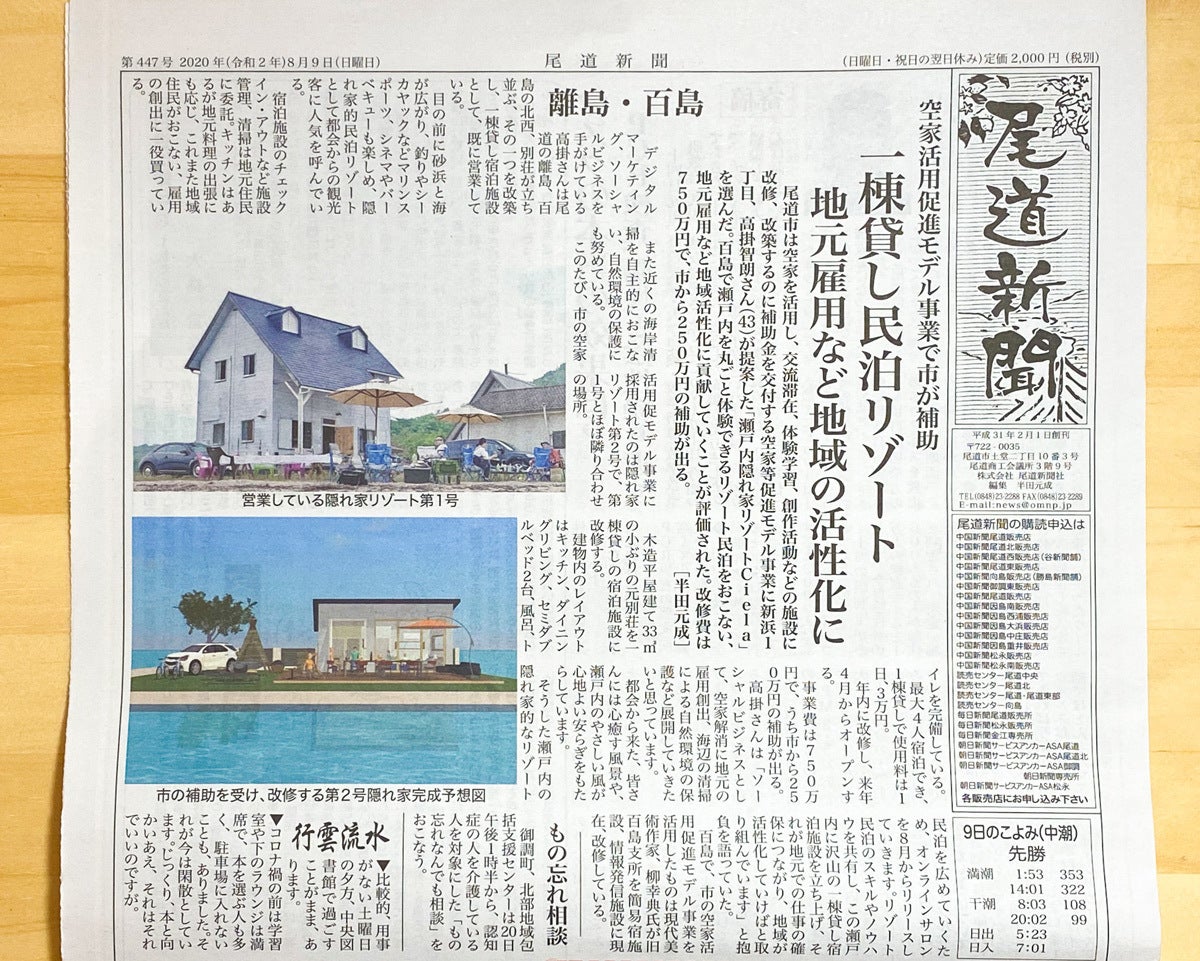 5年前から広島県尾道市百島の空き家を改修して宿泊施設にし、瀬戸内隠れ家リゾートという屋号で、社会課題の解決をしながらより良い地域にしていく活動をしてまいりました。