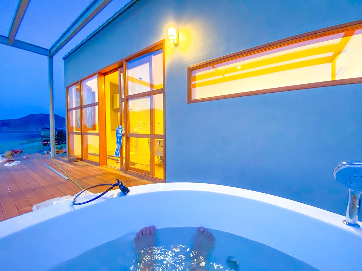 2021/03/10 23:40本日、念願だったジャグジーの設置が完了しました!さっそくお祝いと体感テストも兼ねて、一番風呂を頂きました。笑ジャグジーから臨む瀬戸内海は、昔、バリ島のリゾート地で味わった心地よさを彷彿とさせます。 ジャグジーに入るだけで、こんなに景色の感じ方が変わるとは。早く皆さんに楽しんでいただけるよう、残りのウッドデッキ造作がんばります!来月に迫ってますが、、4月からのご予約を受け付けられる様、旅館業の申請も同時に進めておりますので、今しばらくお待ちいただけますと幸いです。3月下旬には予約受付開始できると思います。 もっと見る