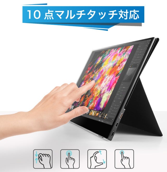 10点マルチタッチ対応でタップ、スワイプ、ピンチなどスマートフォンやタブレットのような操作に加えキータイピングも可能にします。