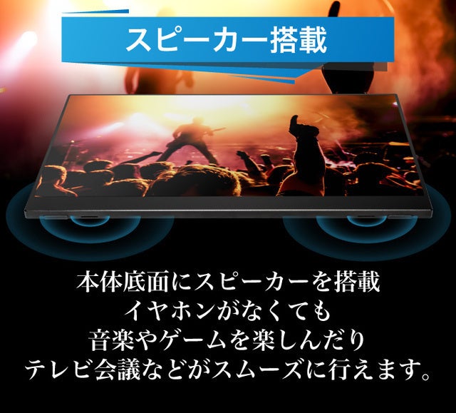 本体底部にスピーカーを搭載しています。イヤホンがなくてもモニタから音を出すことが可能です。