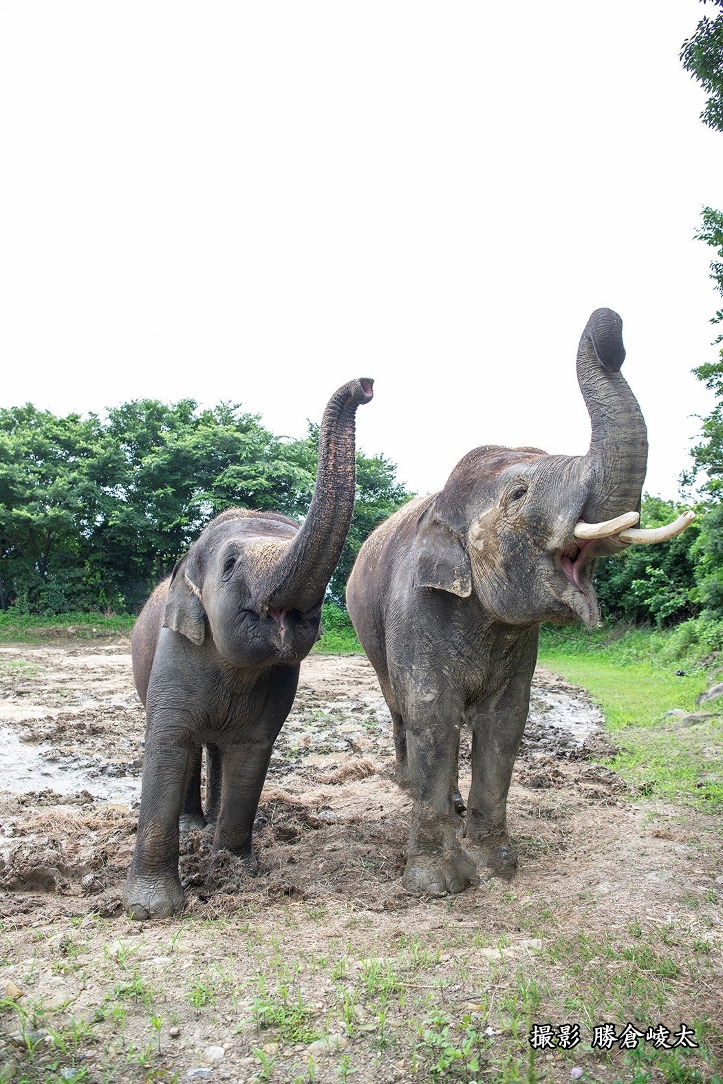 こうしたインドネシアとの交流のお蔭で日本で唯一のスマトラゾウが当園にはいます。雄のアスワタマ(牙のある方)と雌のイダは、来園時はそれぞれ5歳と7歳でしたが、11歳と13歳になりこんなに大きくなりました。今も大の仲良しです。