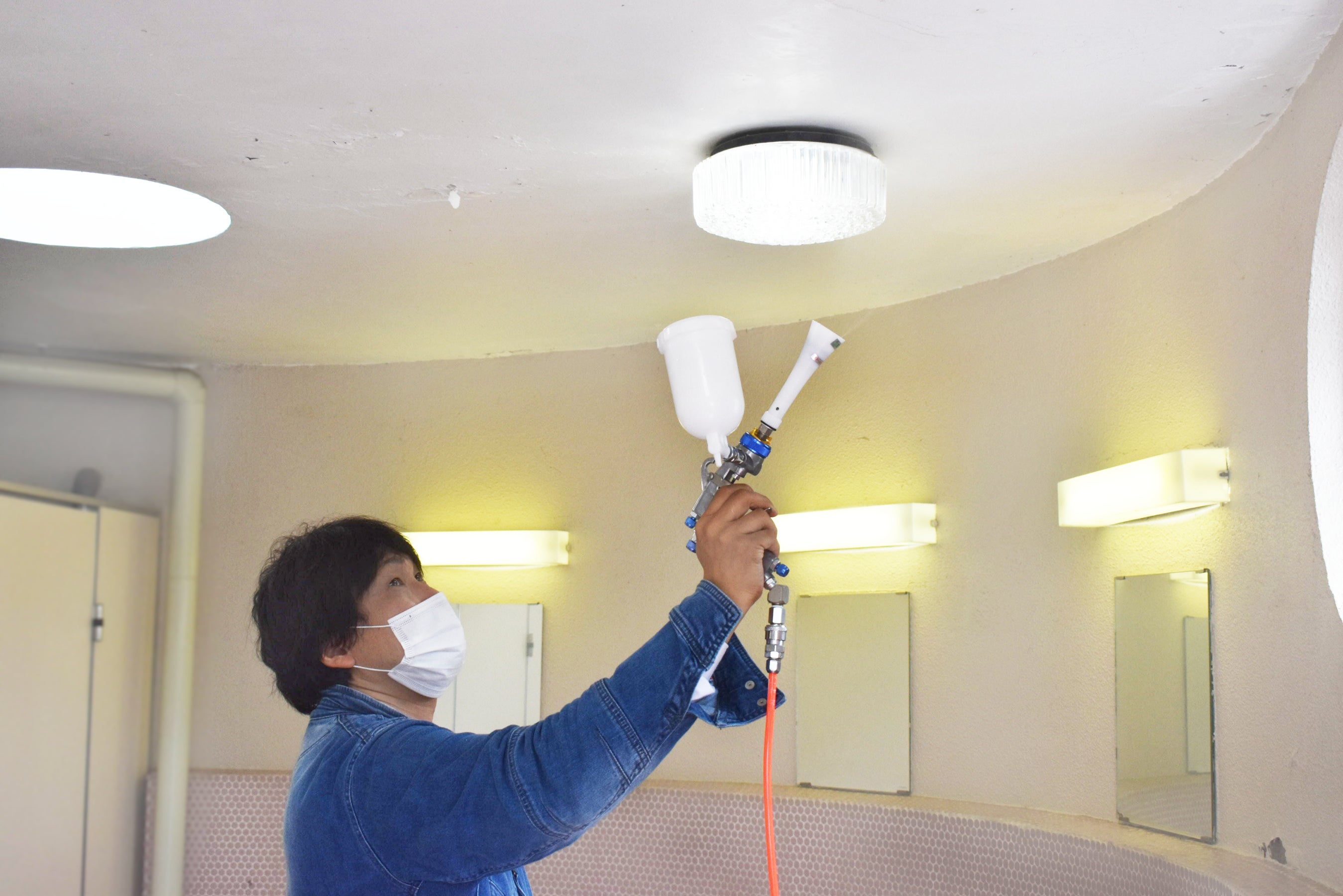 次に、ご来園いただくお客様が新型コロナウイルスに感染しないよう、専門施工業者に依頼し、光触媒を利用したミストをトイレやレストランに散布します。
