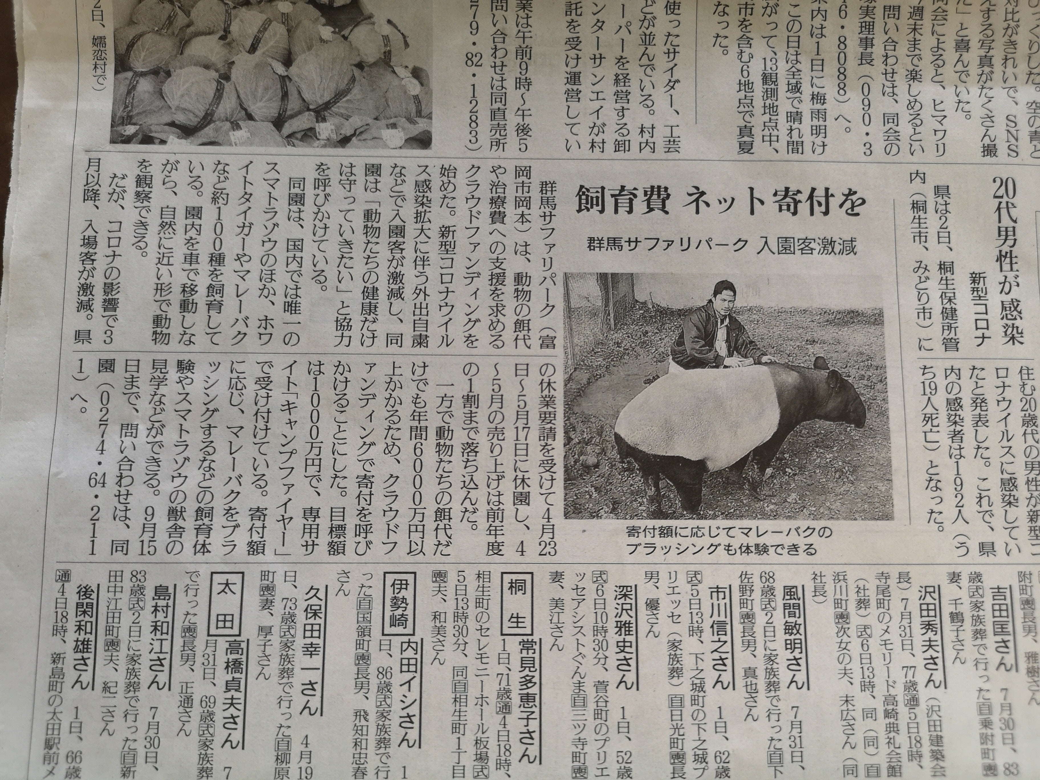 本日、読売新聞の群馬版に当園のクラウドファンディングの記事が掲載されました。