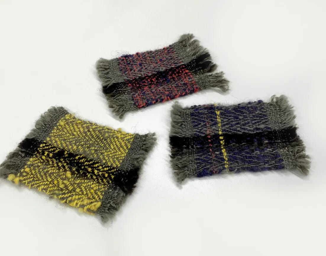 コーヒーカップや置物の下敷きとして温かな空間を演出できます。大きさは約10㎝四方(房含まず)。