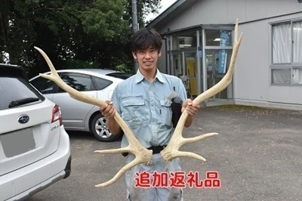 これまで根元の部分の輪切りや先端部分をご用意してまいりましたが、返礼品をご用意できる最後の機会にエルクの角の全体をご用意しました。」