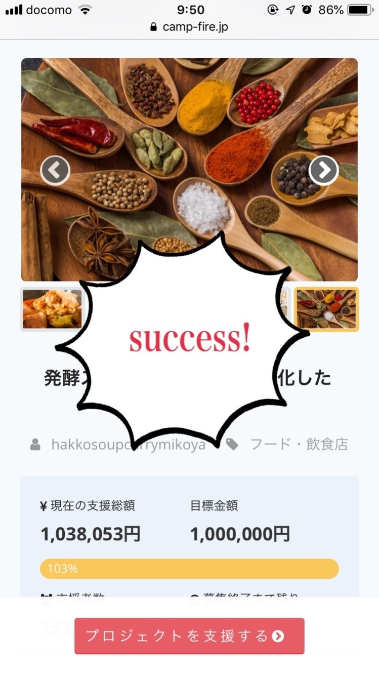 この度は皆様からの温かいご支援のもと、目標達成いたしました事をご報告させて頂きます。