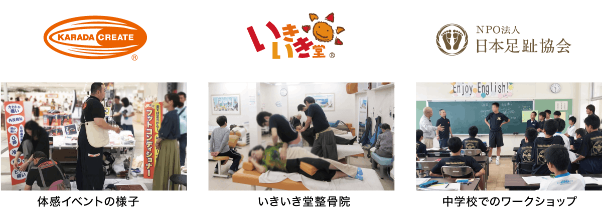 また、大手小売店などでの体感型イベント、学校やスポーツクラブでの「体の使い方ワークショップ」を開催しています。