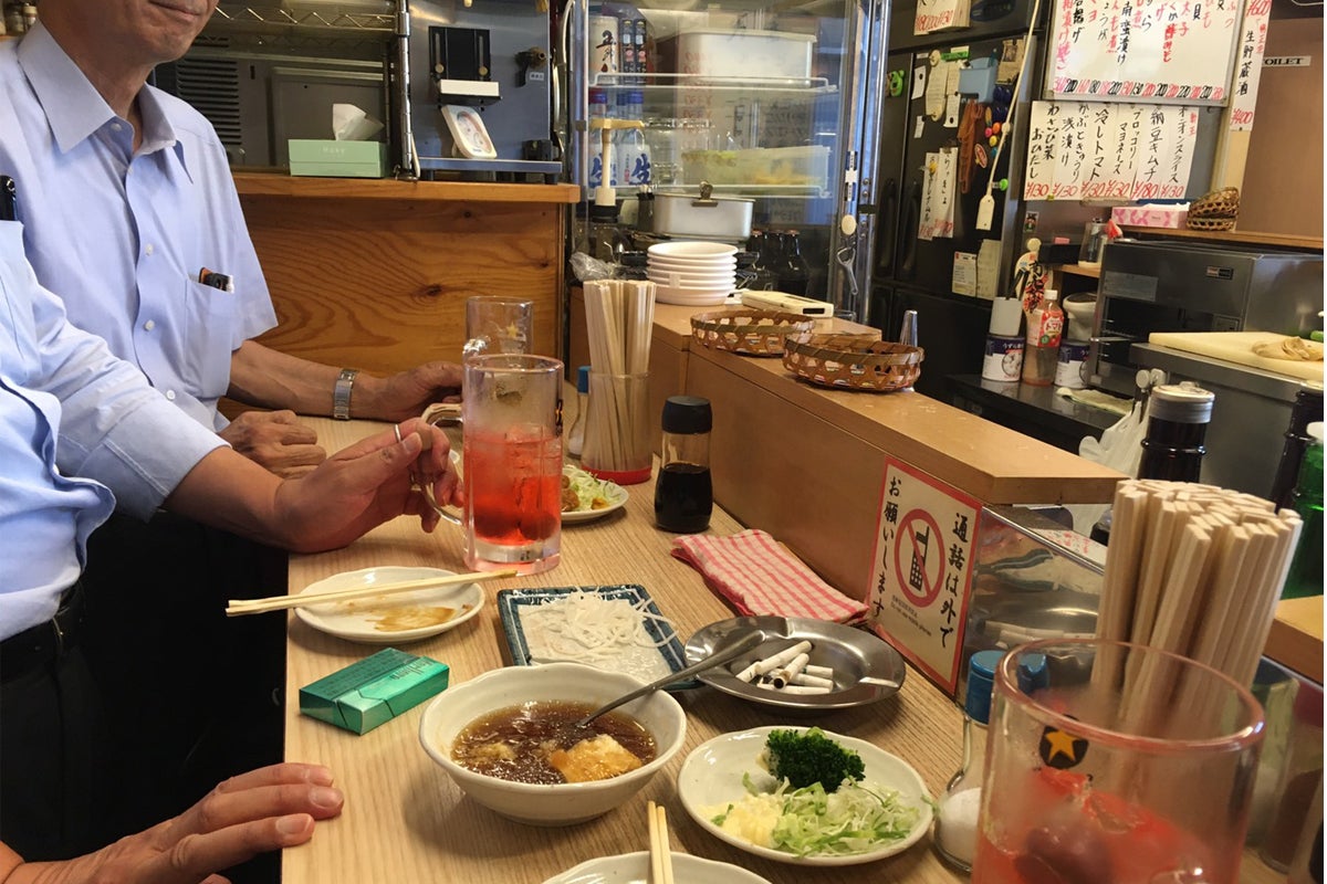 そもそもどうして立飲み屋さんを考えたかと言うと、三ツ星村の担当の酒屋さんが「赤羽」で立飲み屋を経営しているのです。「立ち飲み いこい」 せんべろの聖地である赤羽の中でも知らない人はいないほどのキングオブ立飲み屋。そこで運よくバオさん(写真:中央)が修行させてもらうことができました。洋食寄りのメニューが多い三ツ星村とは違い。和風のメニューが多くどことなくホッとします。とにかく異文化との出会いに衝撃を受けたバオさんが「こっちで立飲みをやったら絶対面白いよ!」となり今に至るわけです。住吉の周りには立飲みの文化がありません。そして隣駅である錦糸町でも、THE立飲みのスタイルでやられているところはほとんど見ません。