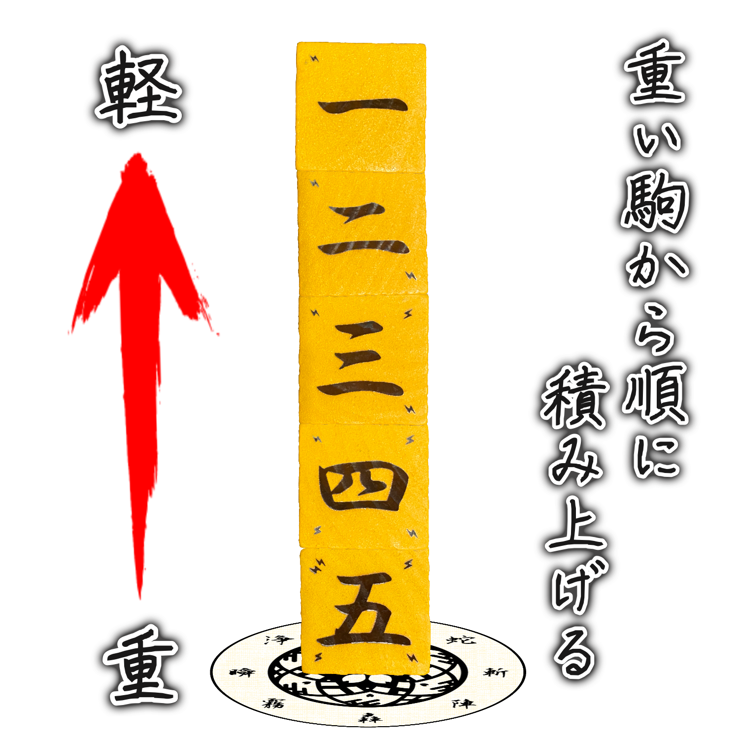数字の"重い"葵石(コマ)から 順に積み上げて”役=塔”を作ります。