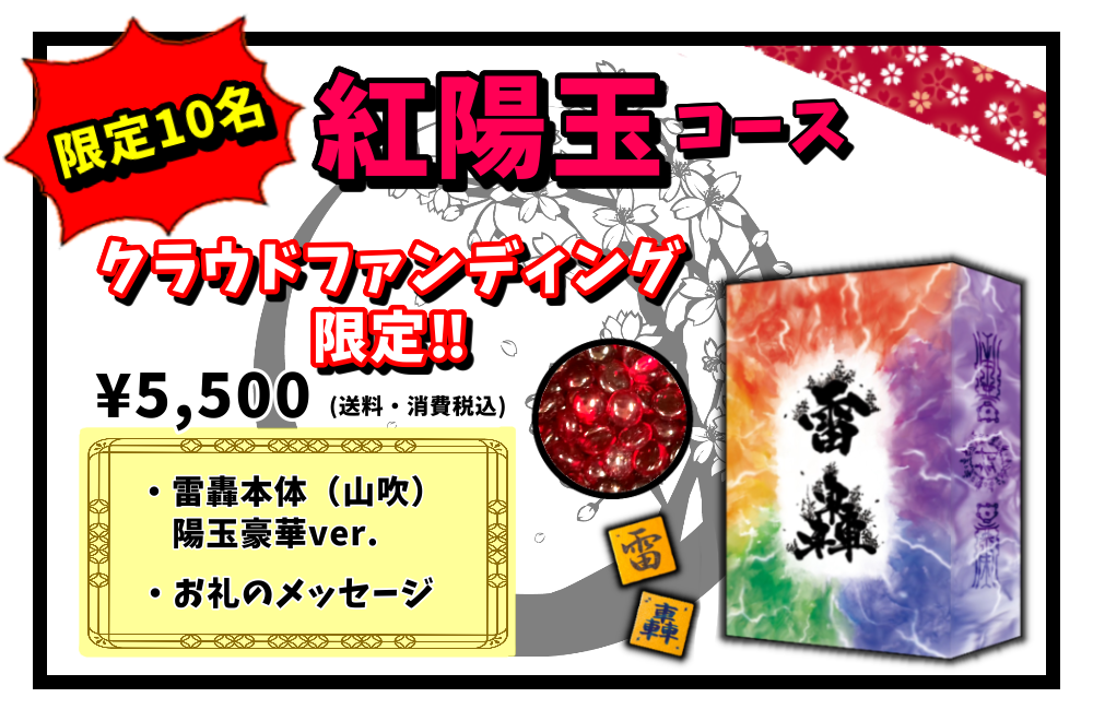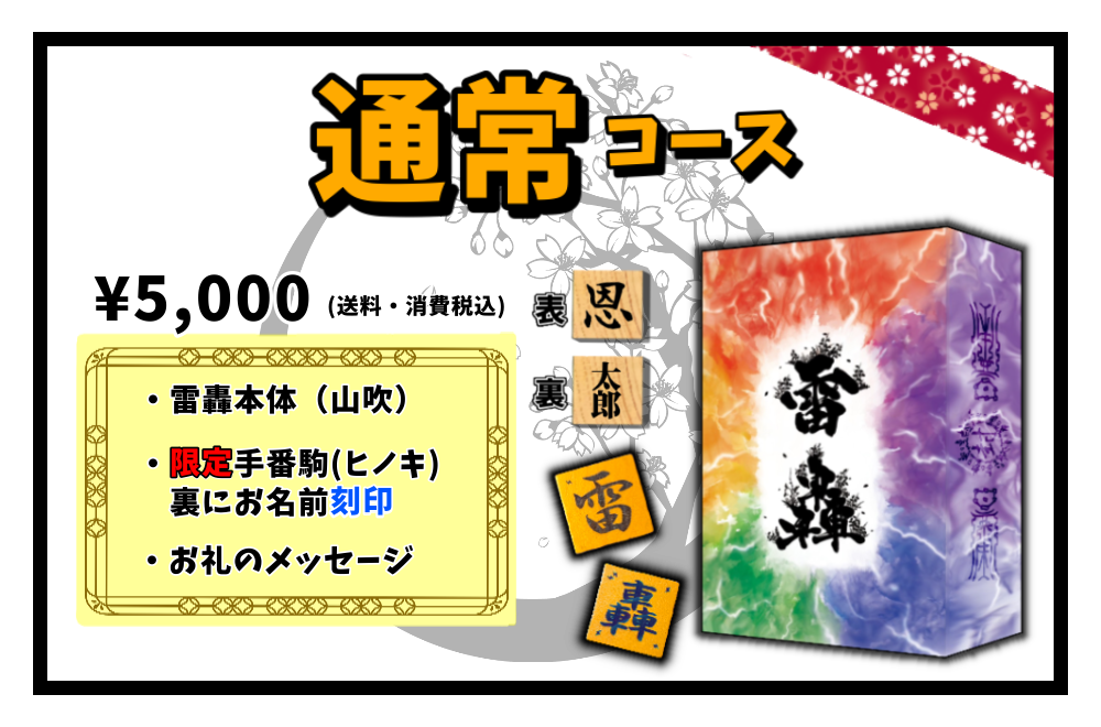 リターン内容に【雷轟本体】が含まれるコースをご支援いただいた皆さまには、