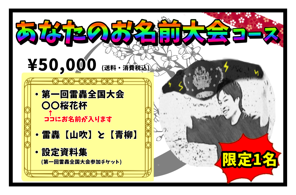 ◆ 第一回雷轟全国大会 の大会名に、お名前を入れる権利