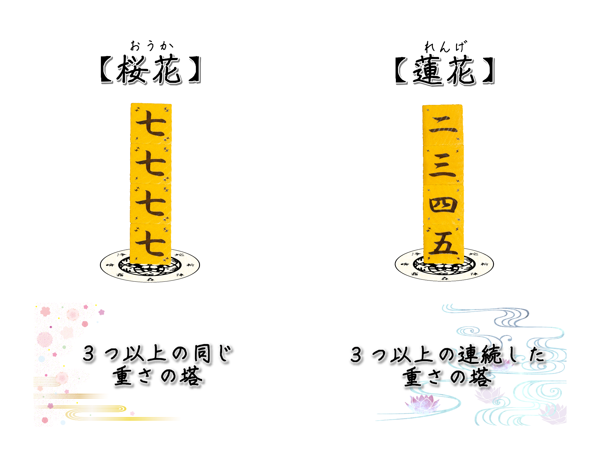 ここでは基本的な塔の”桜花”と”蓮花”をご紹介いたします。