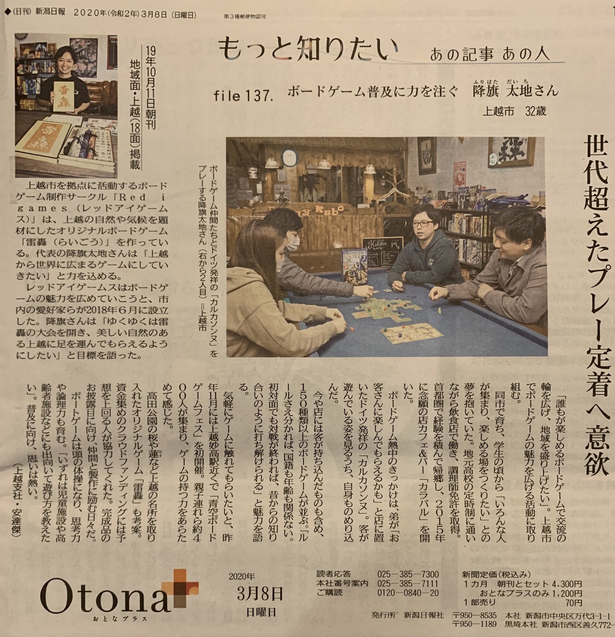 新潟日報 2020年3月8日