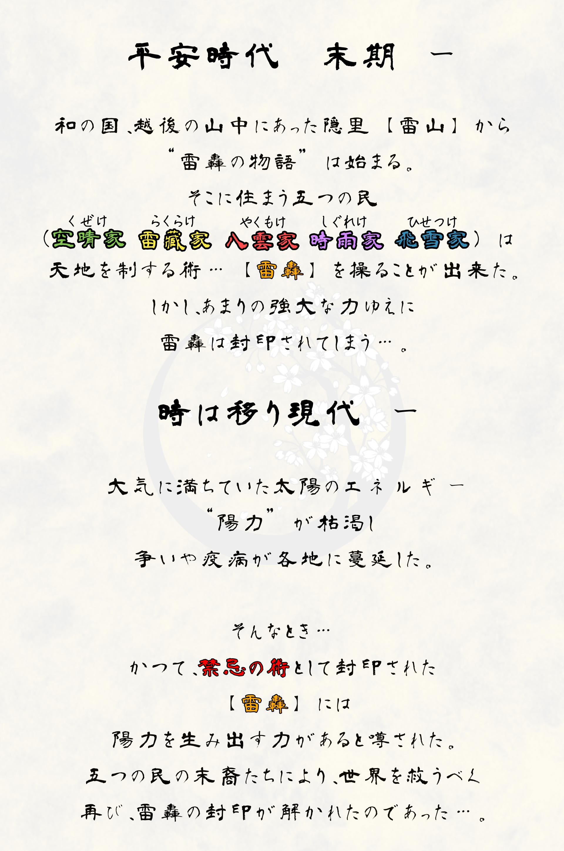 ボードゲーム雷轟の、ストーリー・登場キャラクター・世界観などが記された