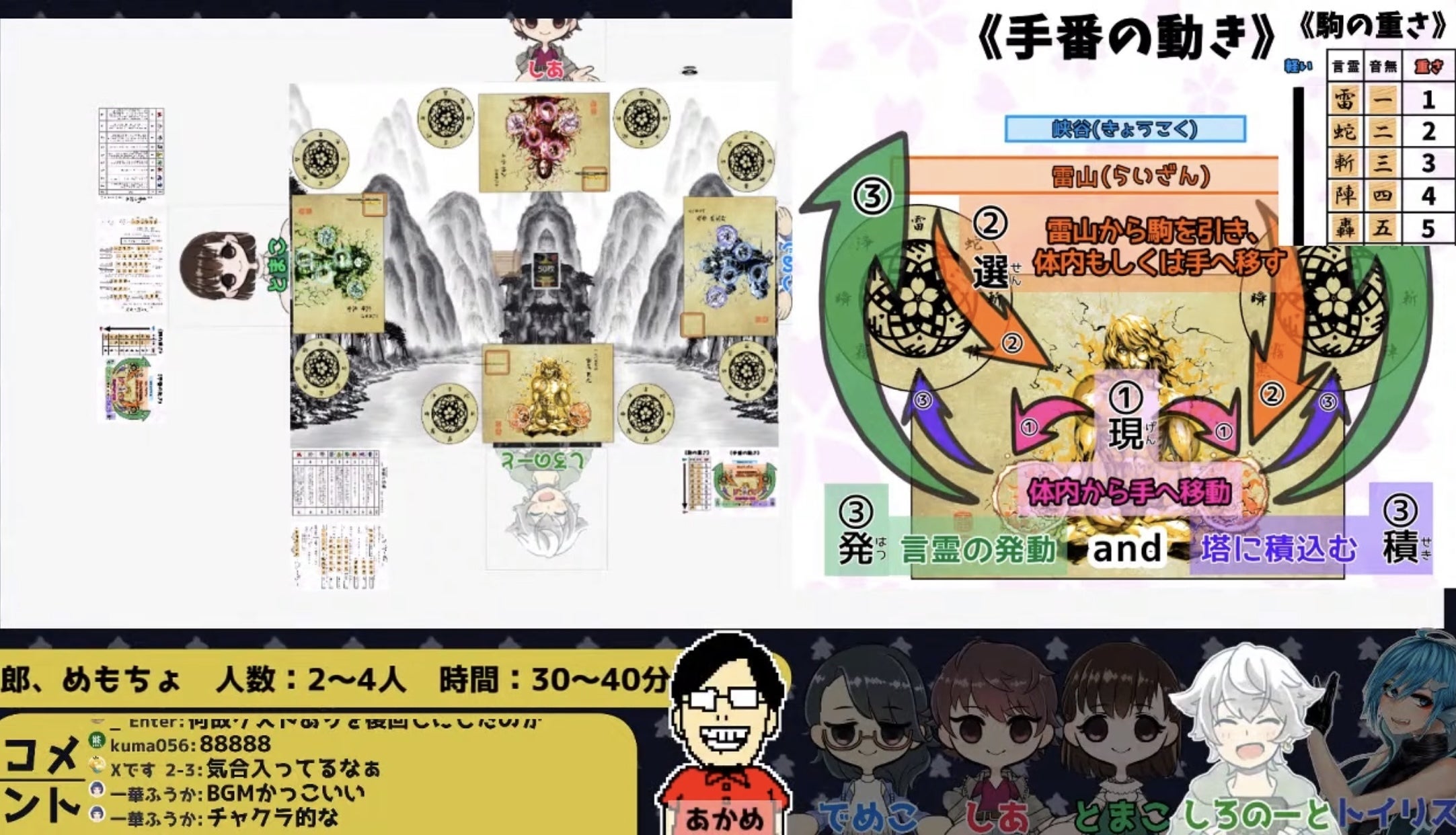 雷轟は駒を縦に積み上げてプレイするゲームですがユドナリウムの仕様上それが難しいとのことだったので、急遽カード版の雷轟を作成(´∀`)汗。そちらを落とし込んでのプレイング!お恥ずかしい話、ユドナリウム自体が初見だったので…新たな発見に終始ワクワクドキドキが止まらない。w 一から十までご指導いただいたトイリスさんには感謝しかありません(T ^ T)