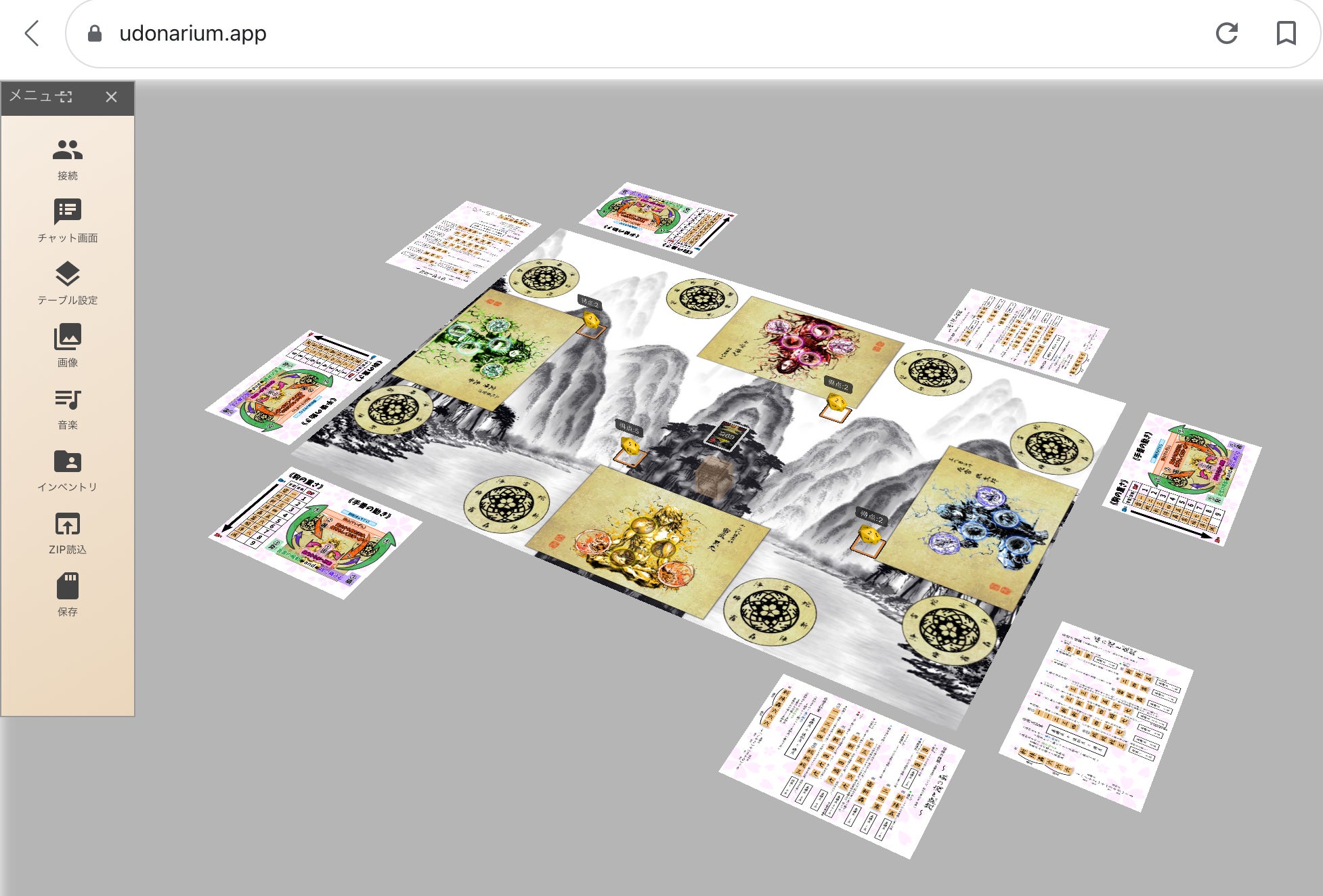 Discordの音声チャットとユドナリウム(Webアプリケーションとして構成されたボードゲームオンラインセッション支援ツール・無料)を利用いたします。