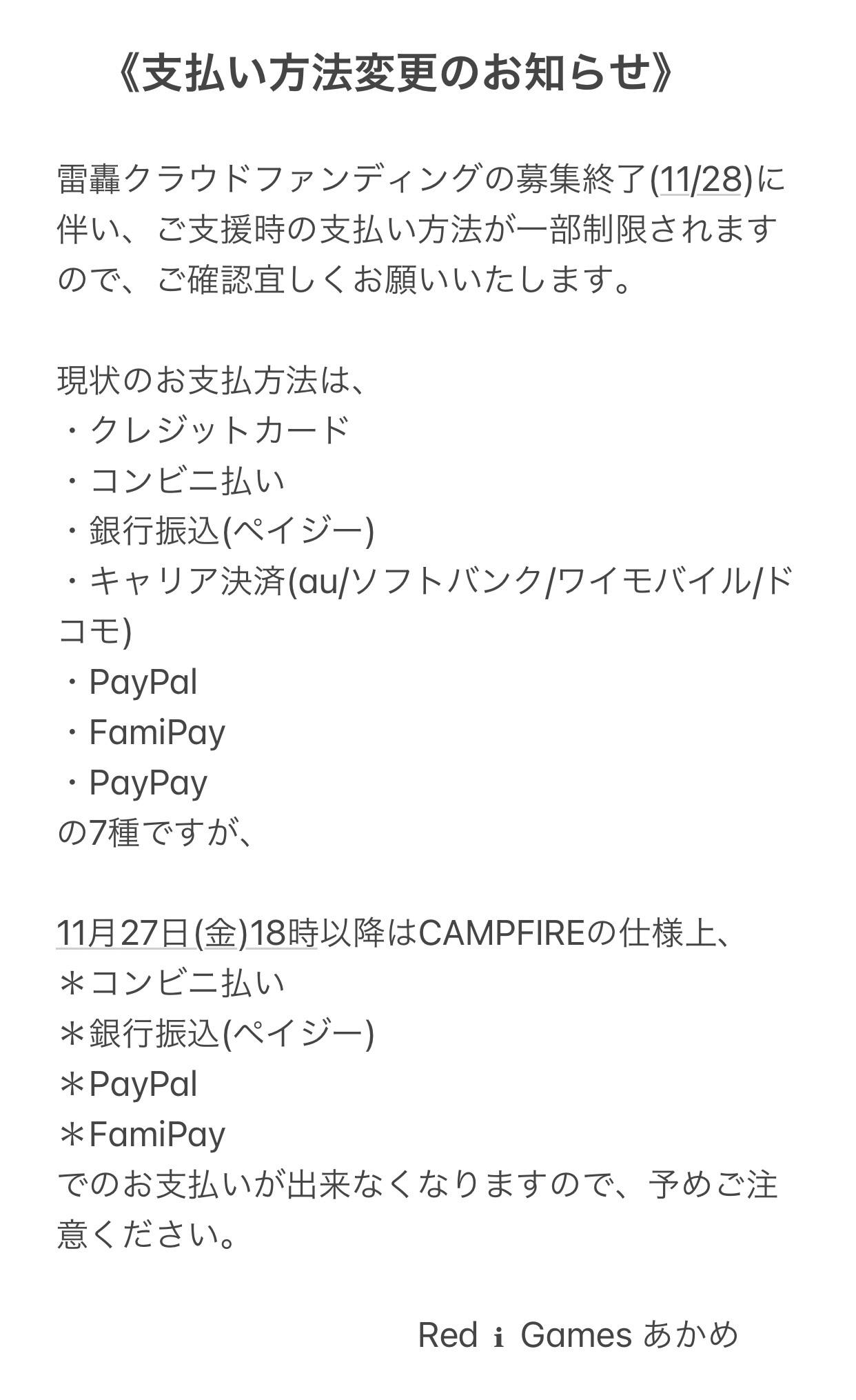 つきましては、ご支援時の支払い方法が一部制限されますので下記をご参照ください。