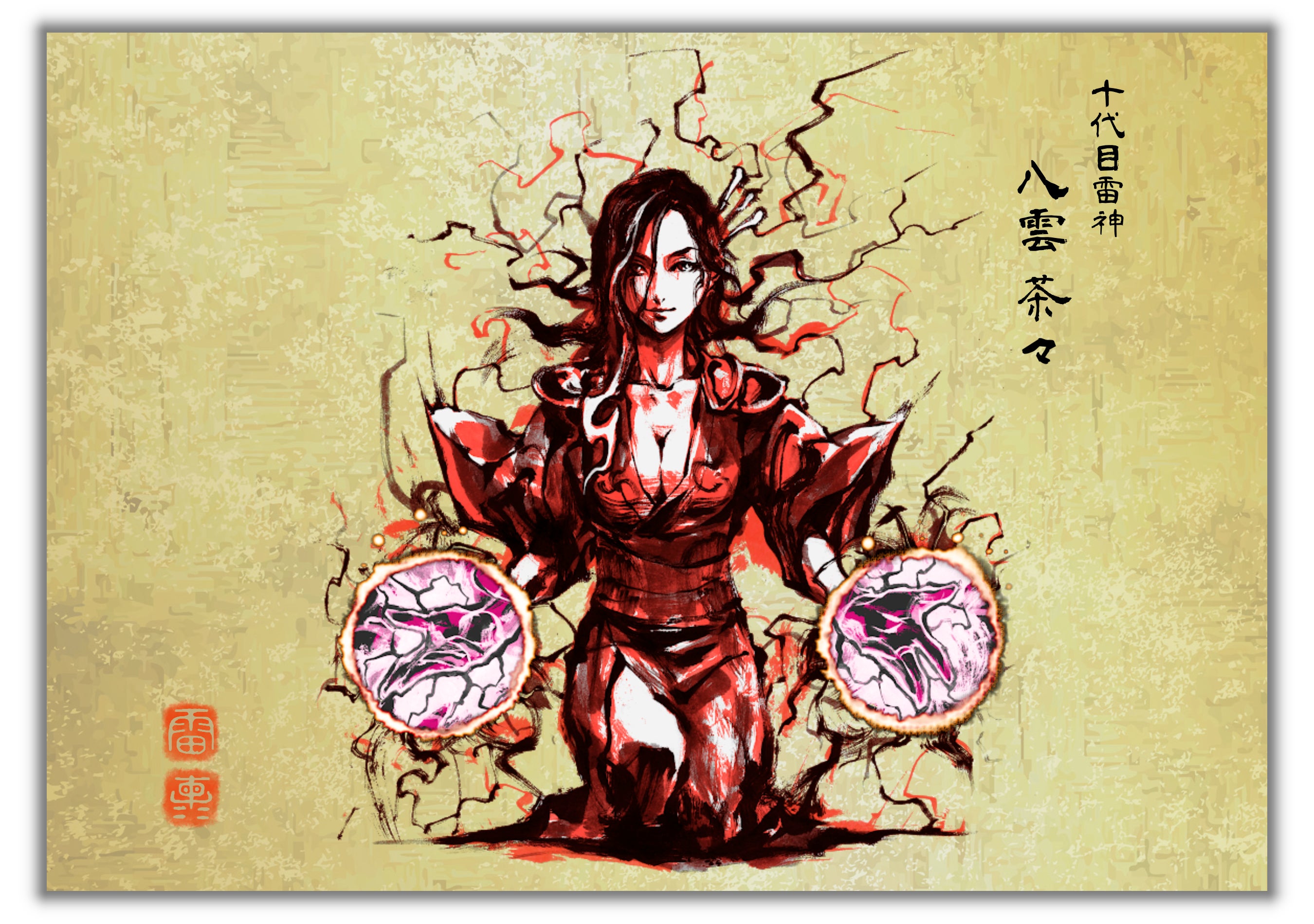 お待たせいたしました!岩元辰郎さん描き下ろしの雷轟プレイマット新キャラクター十代目雷神『八雲 茶々』を公開いたします!!燃え上がる炎のように、ほとばしる深紅の雷をその身に宿した彼女はとても美しい!!岩元先生ありがとうございます(*´ω`*)キャラクターストーリーは近日中に掲載いたします。次回の新キャラクターも乞うご期待!!