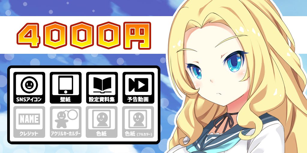 SNSアイコン・携帯壁紙・設定資料集(24頁)・ アップデート内容の予告プレイ動画・ゲーム内のクレジット記載 ・ アクリルキーホルダー(千夏/ユリ/都 )のお好きなキャラ一つ